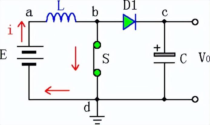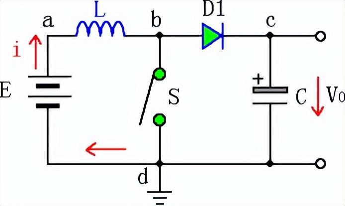 接下来通过开关不断地闭合、断开,就可以不断地输出电压U0,且该电压U0高于电源电压E,从而起到升压的目的。