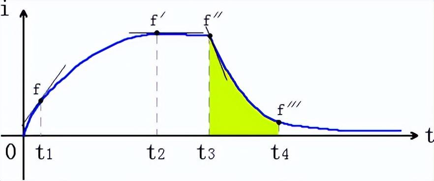 如图1所示,当开关S闭合时,a、b、d构成闭合回路,电源E通过电感产生从小到大的电流i,此时t1(如图2中t1→t2)电流频率趋近高频,根据楞次定律(增反减同),电感产生感应电流方向与原电流i相反,感应电流阻碍i变化,电感感应电流方向为b→a,也就是说电源电流i在电感上转为磁能存储了下来,直到t2时电流i最大,阻碍力也是最大,电感存储的磁能也为最大。再接着t2过后电流倾向平缓,电流频率趋近直流,电感阻碍减弱,多余的电流通过开关,组成闭合回路流向负极。