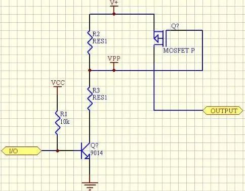其中R1=10K,R2、R3大小由V+决定,V+越高,R2、R3越大,以保证电阻及三极管功耗在允许范围,同时保证R2和R3的分压VPP=V+ 减10V,同时V+不能大于40V。