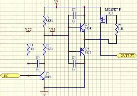 R2、R3需要满足和图一一样的条件,其实就是图一加了级推挽,这样就可以保证MOSFET管高速开关,上面6P小电容是发射结结电容补偿电容,可以改善三极管高速开关特性。
